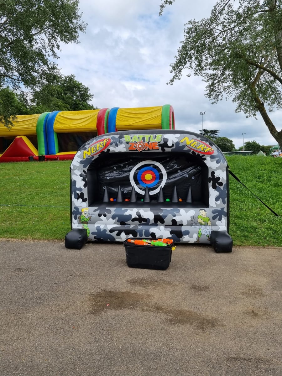 Funday Ltd offers an exhilarating and action-packed Nerf Battle Zone hire, perfect for adding a thrilling and competitive element to any event. Whether you're hosting a birthday party, corporate event, school fair, or community gathering, the Nerf Battle Zone rental creates an interactive and fun environment where participants can engage in friendly competition. The Nerf Battle Zone hire provides a safe and exciting space for players to battle it out using Nerf blasters, complete with inflatable obstacles and a designated play area. This exciting activity encourages teamwork, strategy, and friendly rivalry, making it a hit for all ages.