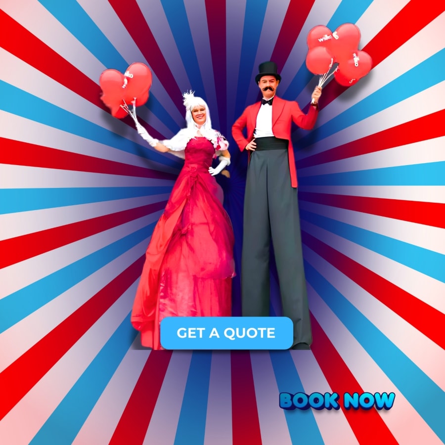 Our professional stilt walkers are skilled performers who can adapt their costumes and routines to suit your event’s theme. From colourful, whimsical characters to elegant, towering performers, stilt walkers add charm, humour, and interaction to any occasion. They can mingle with guests, perform playful routines, or pose for memorable photos, creating a magical atmosphere at your event.