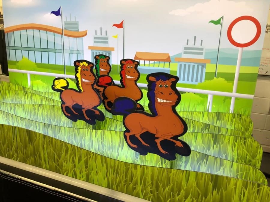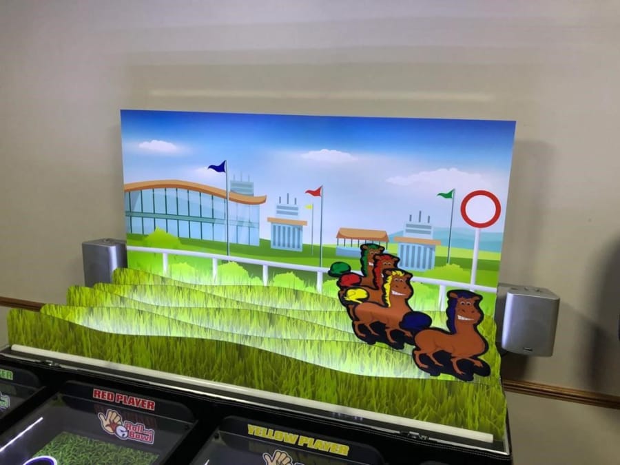 We can even wrap our roll-a-ball horse racing derby game with your logo and branding, or with custom objects and characters!