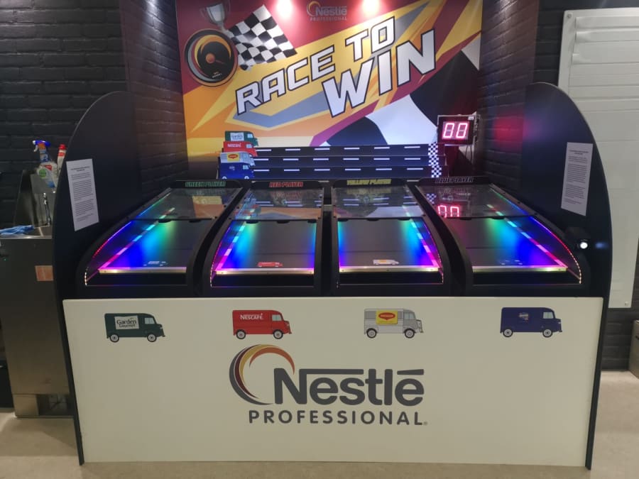 Hiring a ball-rolling Kentucky Derby horse-race game is a great idea for all kinds of events. Not only is it fast-paced entertainment, but the lights, noises, laughter and competition will attract people to the stand and build up lots of attention. If you're feeling like a showman, use the microphone to give an ongoing commentary of the race in the style of your favourite horse-racing pundits - this will really help to build up the tension while putting smiles on the faces of all the competitors and spectators.