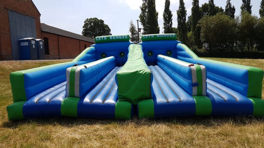 4 Lane Bungee Run hire, bungee run hire, inflatable bungee run, competitive event hire, outdoor inflatable games, event fun hire, team-building activities, corporate event games, large party entertainment, festival games hire, competitive party games, exciting inflatables, inflatable race hire, event hire services, fun competition games, bungee run for hire, inflatable race track, adrenaline-filled event activities, large event inflatables, outdoor entertainment hire.