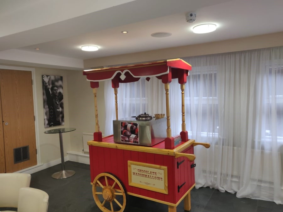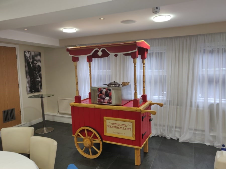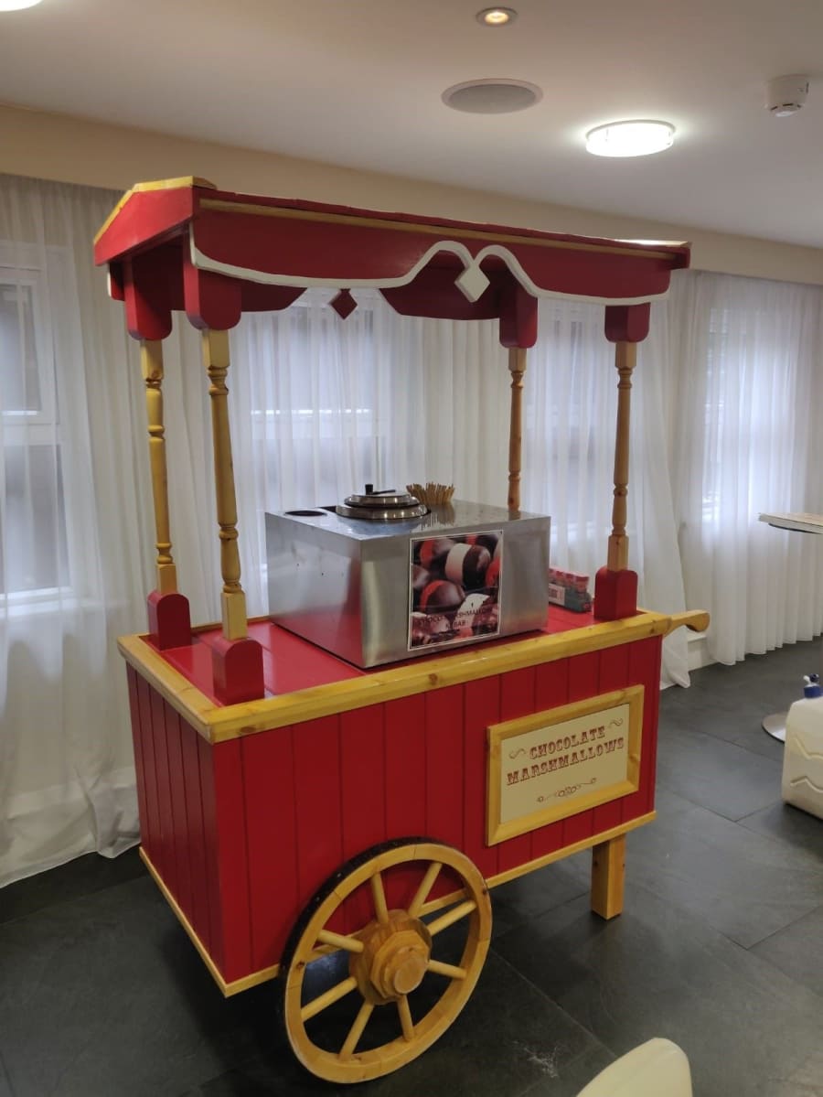 We can set your chocolate marshmallow stand on a side stall or on a traditional cart. If you want to ask any questions before you get started, we'd love to hear from you - check out our contact us page to get started!